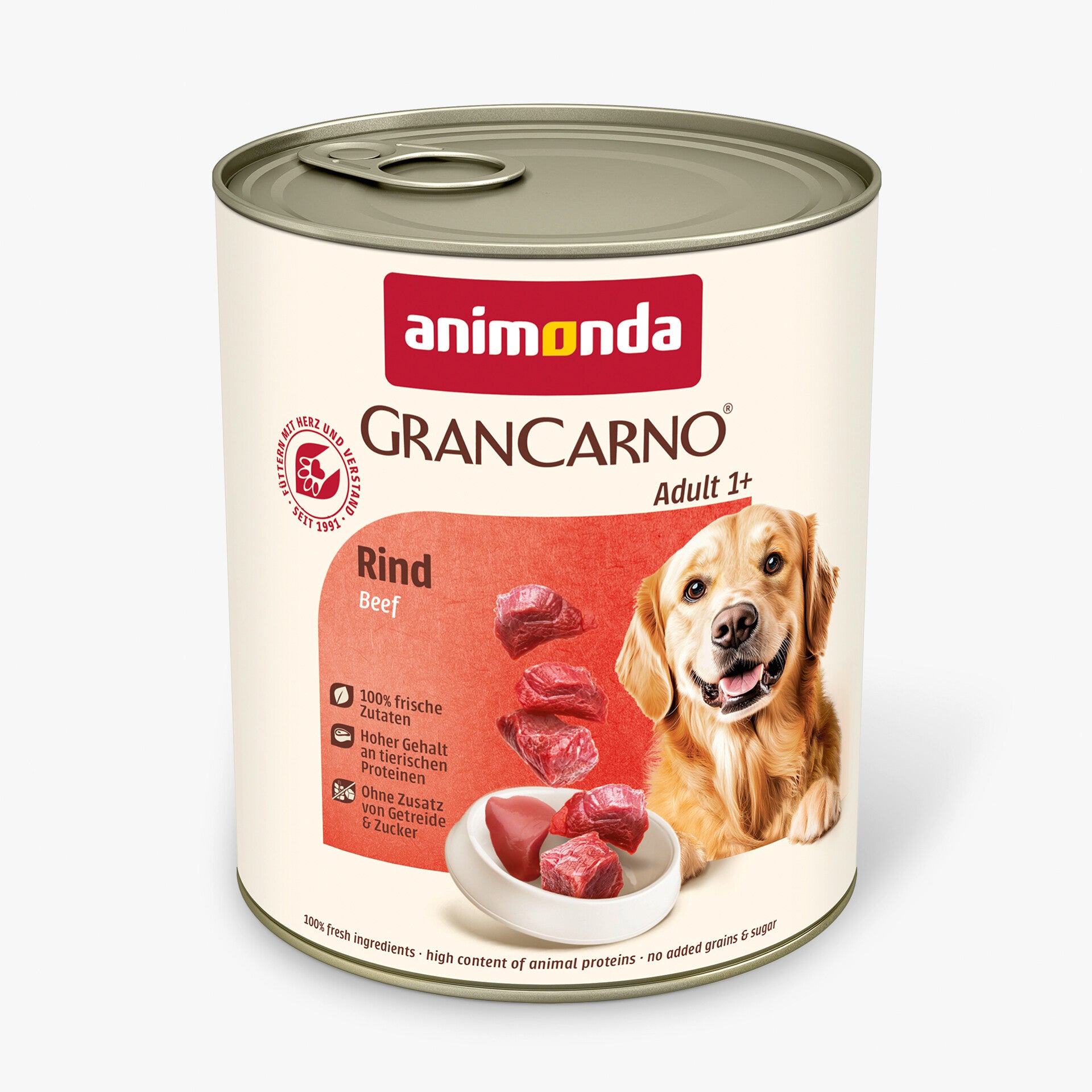 Heerlijk van smaak en goed uitgebalanceerd: GranCarno Adult Beef voorziet honden van alle essentiële voedingsstoffen die ze elke dag nodig hebben. Het natvoer imponeert honden met zijn zichtbare, vlezige brokken en bevat geen granen, soja of suiker.