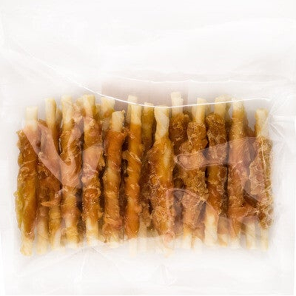 Gedraaide kauwstaaf, omwikkeld met kipfilet
