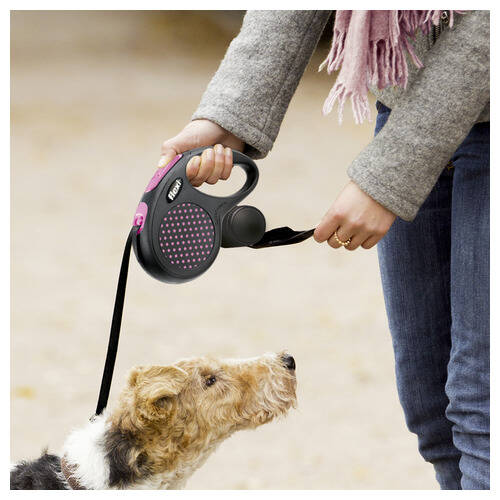 - Rollijn met band- 5 meter- Geschikt voor honden tot 50 kg (Large)- Heeft een handig rem- en terughaalsysteem