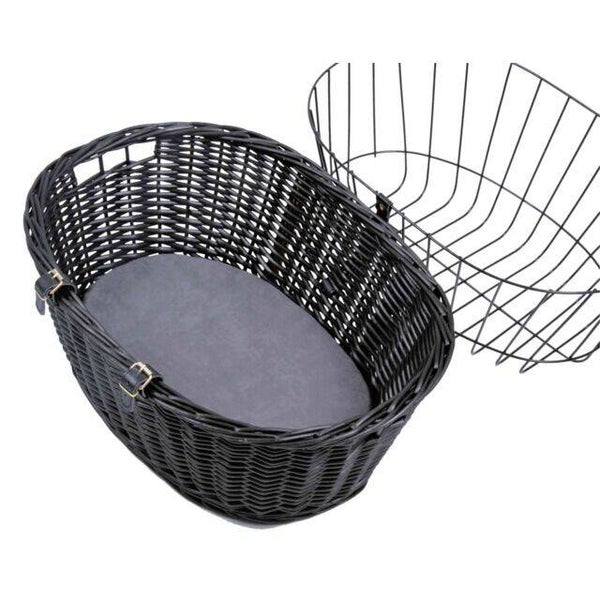 Trixie Wilgen Fietsmand Voorop Zwart Met Kussen En Kap