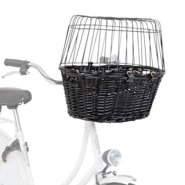 Trixie Wilgen Fietsmand Voorop Zwart Met Kussen En Kap