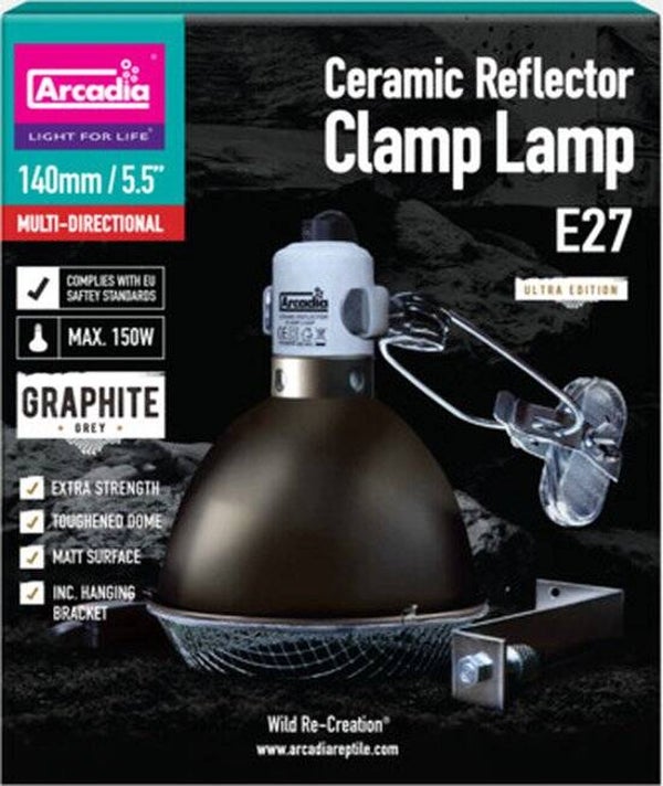 De Arcadia Reptile Reflector Clamp Lamp is een volledig inclusieve kit, die alles bevat wat je nodig hebt om kwikdamp en warmtelampen veilig te gebruiken boven een open tafel of gemonteerd in een vivarium.