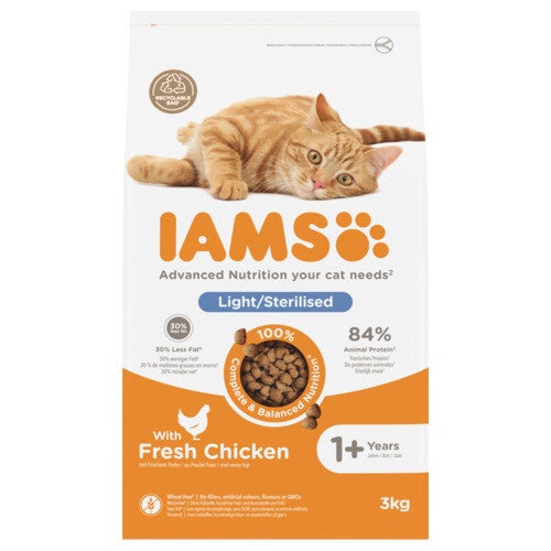 De cat adult sterilised van Iams is speciaal ontwikkeld voor gesteriliseerde poezen.