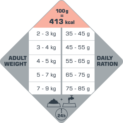 - Optimale formule voor een volwassen kat met een uiterst gevoelige spijsvertering: 39% eiwitten / 20% vet, alle nodige nutriënten en extra taurine.