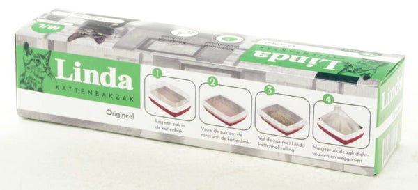 De zak komt onderin de kattenbak te liggen. met de lussen om de rand heen. Het kattenbak grit er bovenop en als het tijd is om de bak te verschonen trek je de zak er aan de lussen simpel uit.