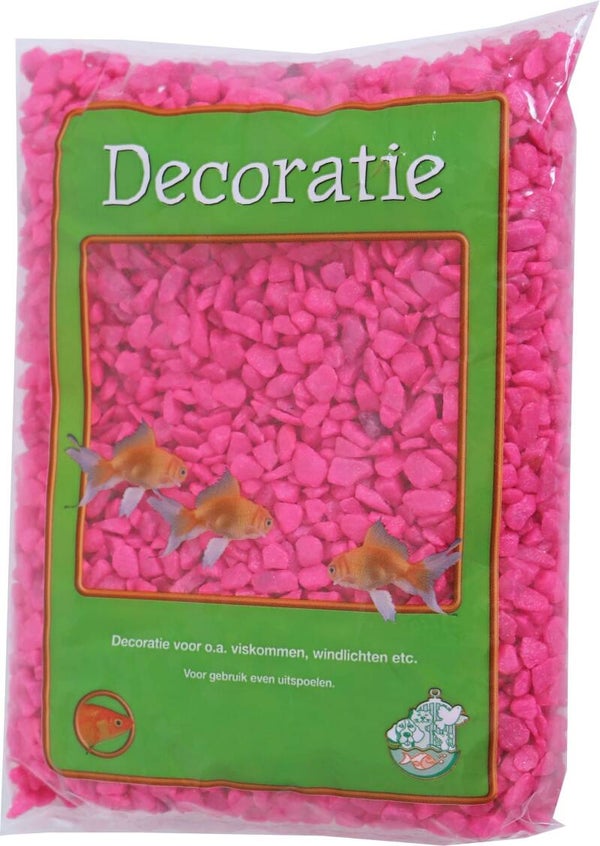 Neon quartz roze een decoratieve bodembedekker voor viskommen, kleine en grote aquaria en ook zeer geschikt als decoratie op bijvoorbeeld bloempotten. Veilig voor vis en plant. 1 kg per verpakking.