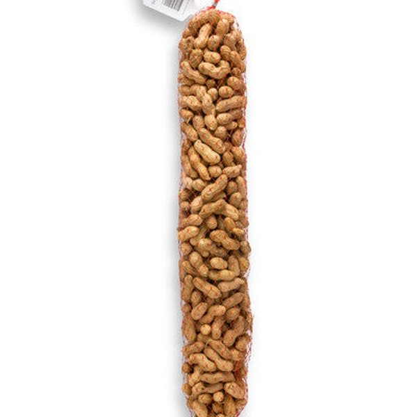 Pinda's. 400 gram ongepelde pinda's in een makkelijk op te hangen of neer te leggen slurf.