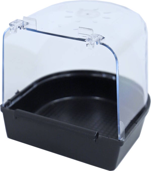 Vogels vinden het heerlijk om een bad te nemen! Daarom zorgt dit ruime badhuis voor een rechte kooi voor veel badplezier. De transparante kap zorgt ervoor dat het water niet uit het badje gespetterd wordt. Het vogelbad is gemakkelijk te monteren aan de kooi.