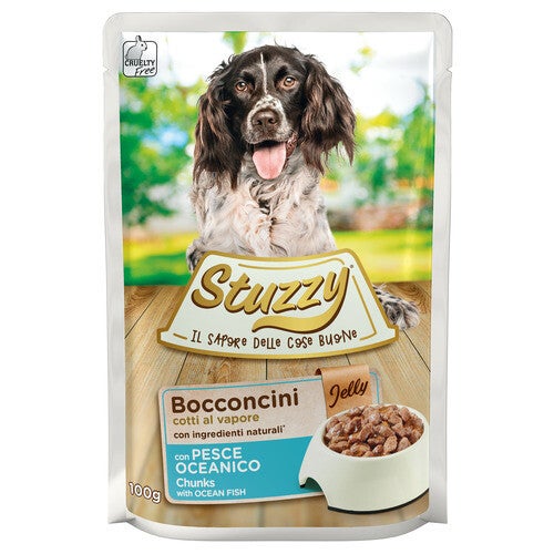 Natuurlijke ingrediënten, hoog vleesgehalte, gestoomd: Stuzzy Chunks met Oceaanvis in gelei is een complete voeding die uw hond zal verleiden met zijn onweerstaanbare smaak!
