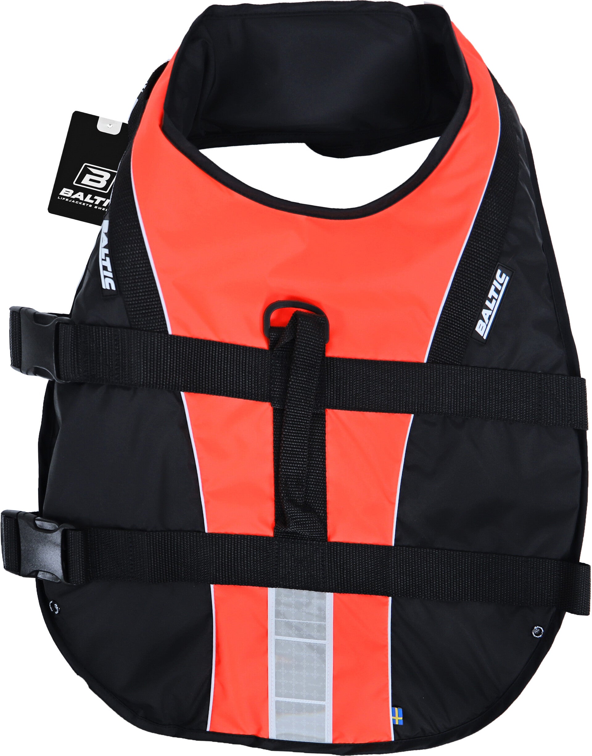 Of uw hond nu uit een boot valt, van een hoge kade in water, of bijvoorbeeld in zee in een aflandige stroming belandt, dit Baltic zwemvest zorgt voor een sterk verbeterd drijfvermogen waardoor uw hond minder snel uitgeput zal geraken. De zichtbaarheid wordt sterk verbeterd door de opvallende kleur en de reflecterende elementen. door het handvat op de rug kunt u de hond ook eenvoudig hanteren.
