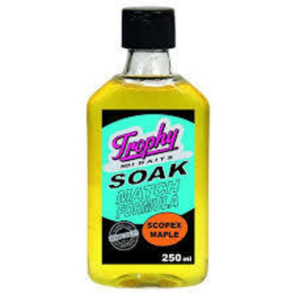 Trophy Soak van Trophy Baits is speciaal ontwikkeld om je aas een extra boost te geven. Deze liquid soak meng je eenvoudig door je stickmix, boilies of grondvoer, waardoor een intense vrijkomt.