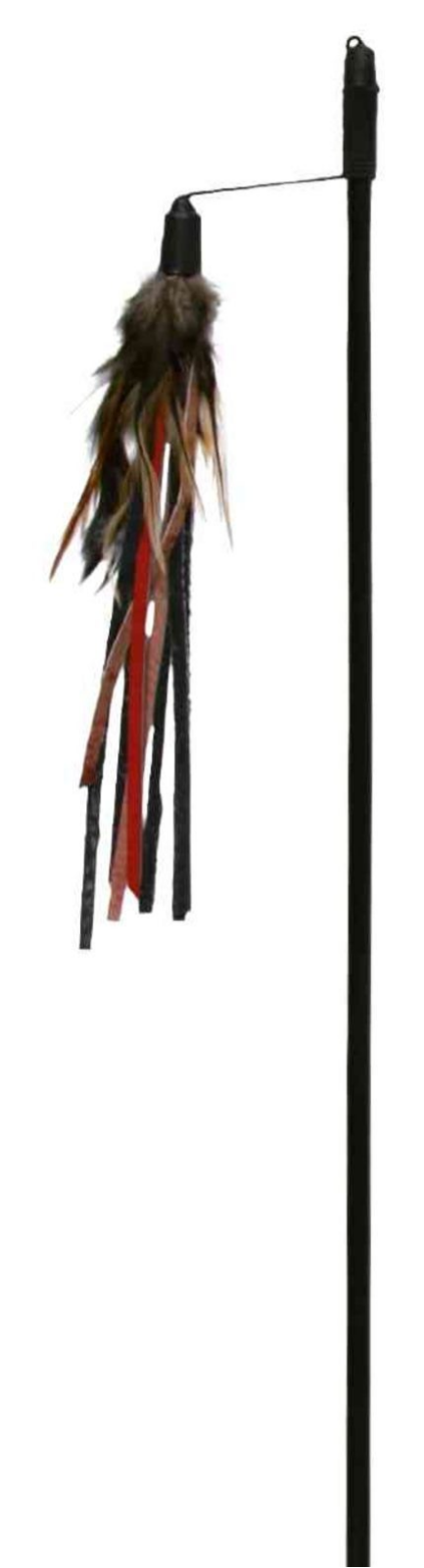 Kattenhengel met leren slierten en veren aan het eind.