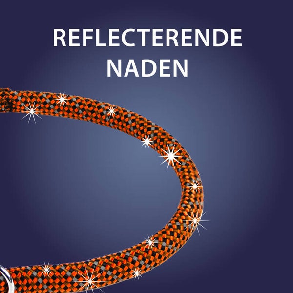 Uitstekend omdat het twee verschillende toepassingen combineert in één product! De Sport Reflex GC is zowel een riem als een halsband voor honden: dankzij het kleine metalen ringetje aan het uiteinde van de riem vindt u de juiste maat voor over de kop van uw hond. Zo heeft u de halsband om uw harige vriend gedaan, terwijl het resterende koordgedeelte een uitstekende riem vormt, zodat u met een gerust hart met uw hond kunt wandelen. De riem is gemaakt van nylonkoord en heeft een buisvormige structuur, kenmerkend voor het volledige Sport-assortiment, en is voorzien van reflecterende stiksels voor een goede zichtbaarheid, ook tijdens wandelingen 's avonds of 's nachts.
