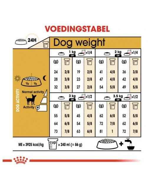 ROYAL CANIN® CHIHUAHUA ADULT komt tegemoet aan de eetlust van de Chihuahua dankzij de combinatie van drie factoren: de aangepaste grootte en vorm van de brokjes, de exclusieve samenstelling en de selectieve smaak.