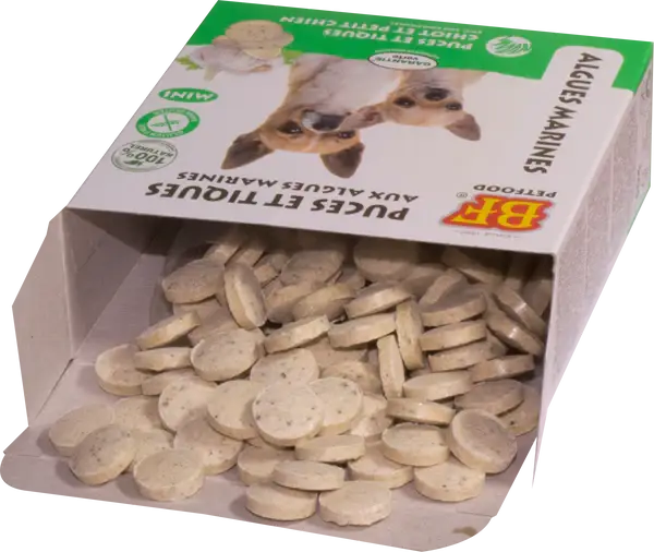 Dit anti-vlo tablet van Biofood is geschikt voor honden van alle rassen en leeftijden en bestaat onder andere uit zeewier en knoflook.