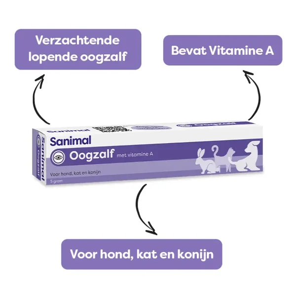Sanimal Oogzalf is een verzachtende oogzalf met vitamine A, voor de verzorging van het hoornvlies.