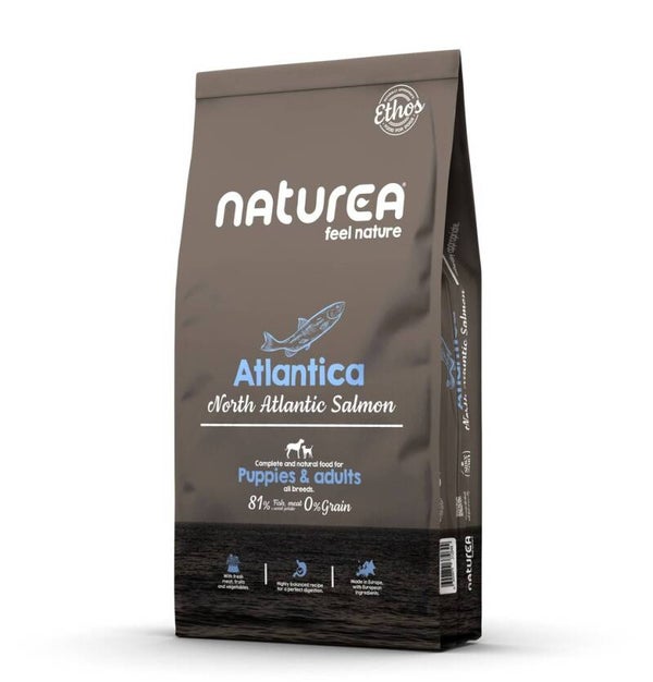 Naturea Atlantica is ontwikkeld door dierenartsen en voedingsdeskundigen en bevat ongeveer 81% dierlijke ingrediënten, met zalm als hoofdingrediënt. Graanvrij en met ingrediënten die zijn goedgekeurd voor menselijke consumptie, volgt Naturea Atlantica het Naturally Suited-concept en is verrijkt met zoete aardappel, zalmolie, eieren, fruit, groenten, aromatische kruiden en zeewier.